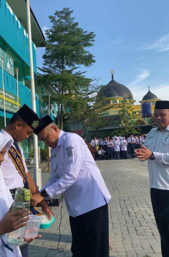 Medan (Humas) – Madrasah Tsanawiyah Persiapan Negeri 4 Medan menerima kunjungan Kepala Seksi Pendidikan Madrasah (Kasi Penmad) Kantor Kementerian Agama Kota Medan, Dr. H. Yose Rizal, S.Ag., M.M. pada Selasa 20 Januari 2026, dalam rangka launching Program Ekoteologi “One Tumbler One Teacher, One Tumbler One Student”.