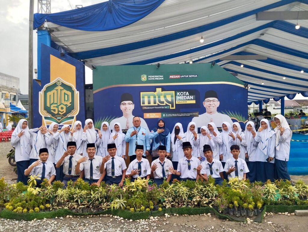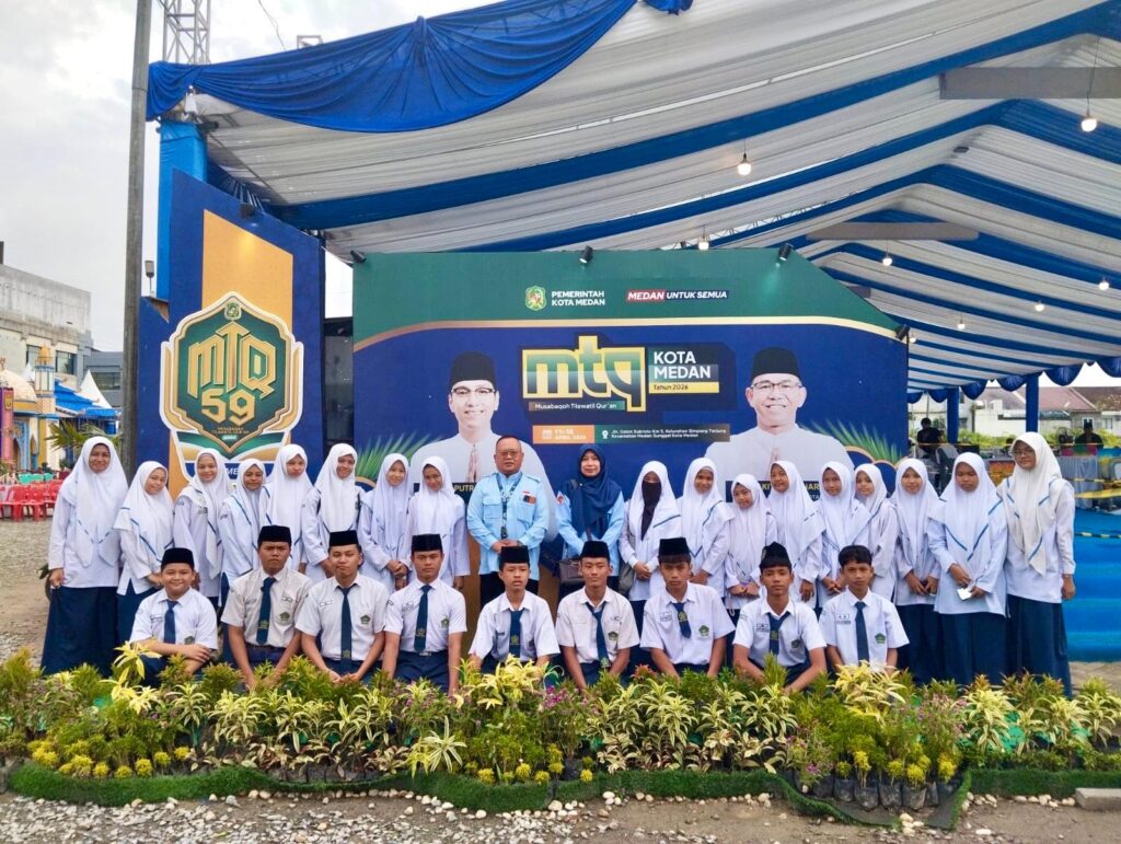 Medan (Humas) — Sejumlah peserta didik Madrasah Tsanawiyah Persiapan Negeri (MTsPN) 4 Medan melaksanakan kunjungan edukatif ke ajang Musabaqah Tilawatil Qur’an (MTQ) Kota Medan ke-59 pada selasa, 14 April 2026, di Jalan Jendral Gatot Subroto, Kecamatan Medan Sunggal, Kota Medan. Kegiatan ini bertujuan untuk menumbuhkan kecintaan siswa terhadap Al-Qur’an sekaligus memperluas wawasan mereka mengenai syiar Islam di tengah masyarakat.
